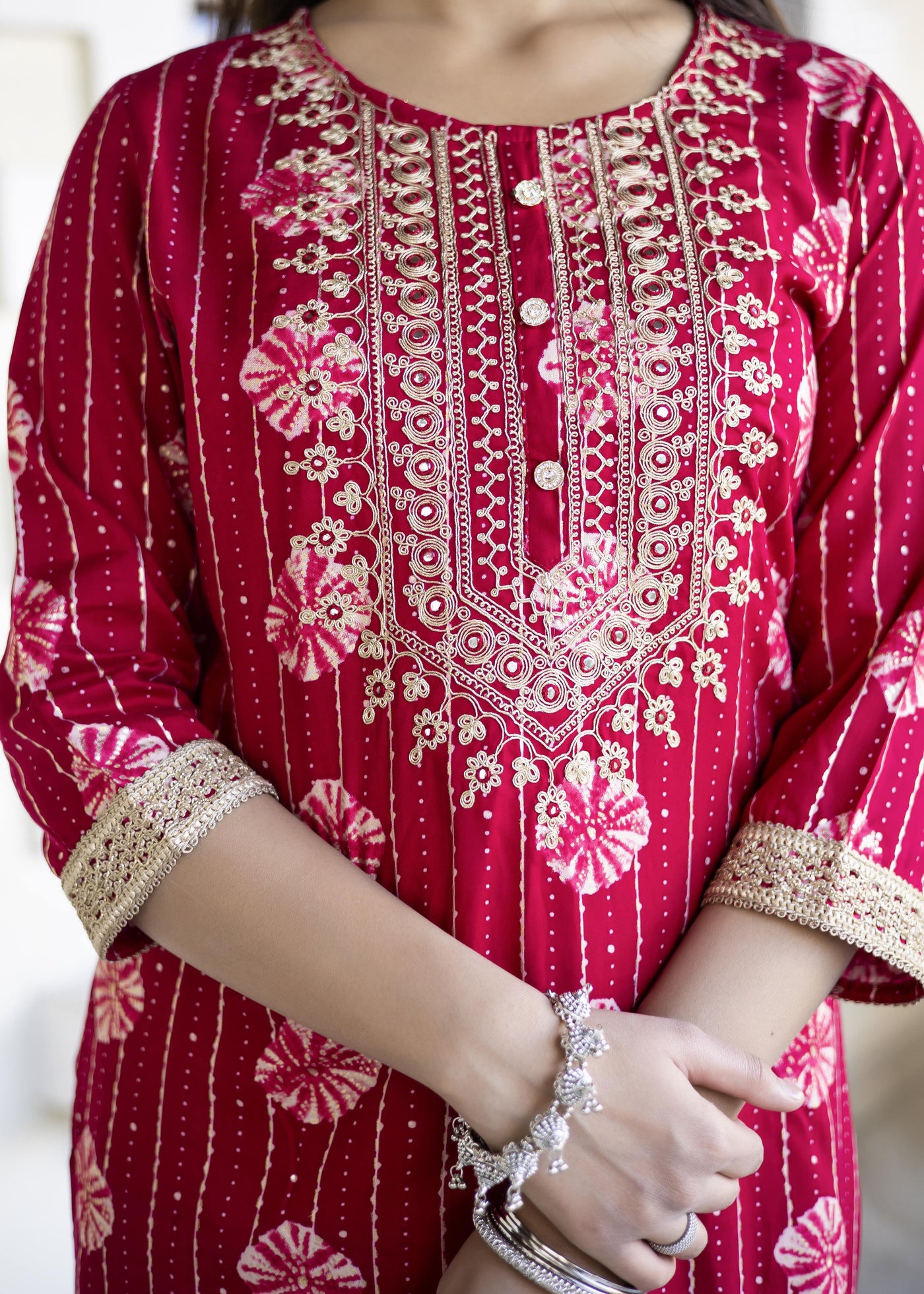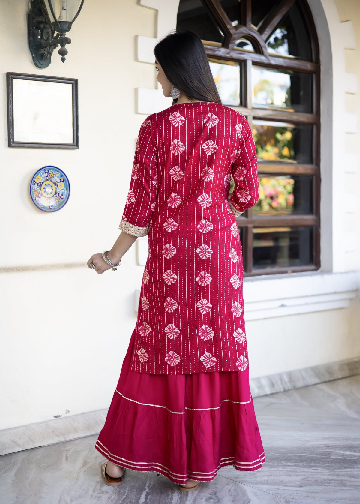 Rani Pink Embroidered Kurta Sharara Set with Dupatta
